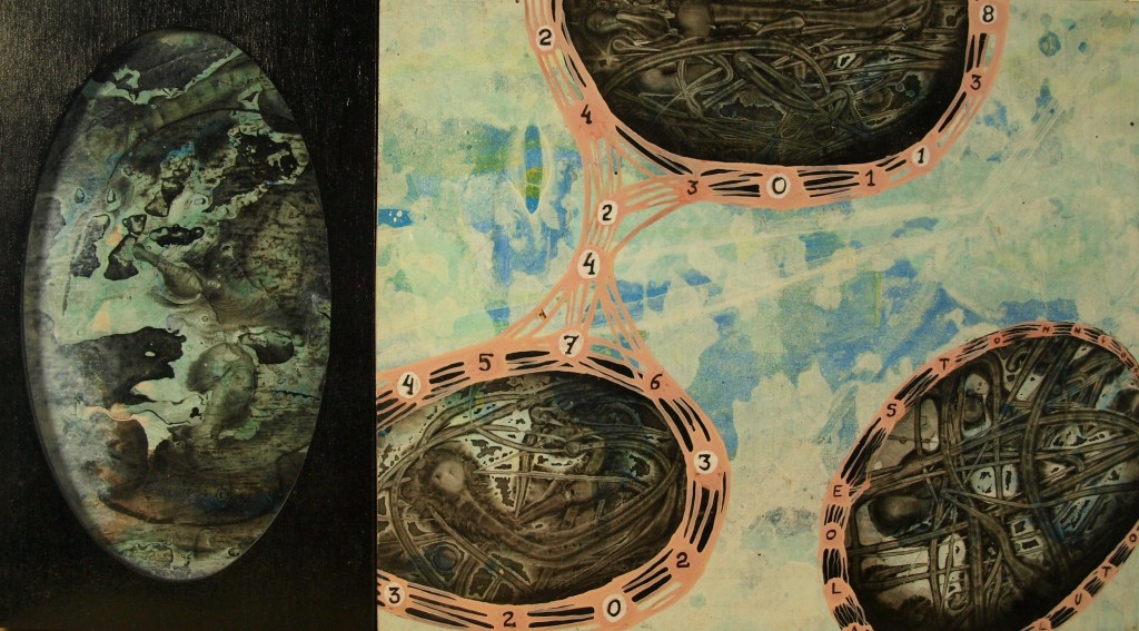 «Visión doble de un mismo evento», 2000, 50×50, acrílico sobre tablex