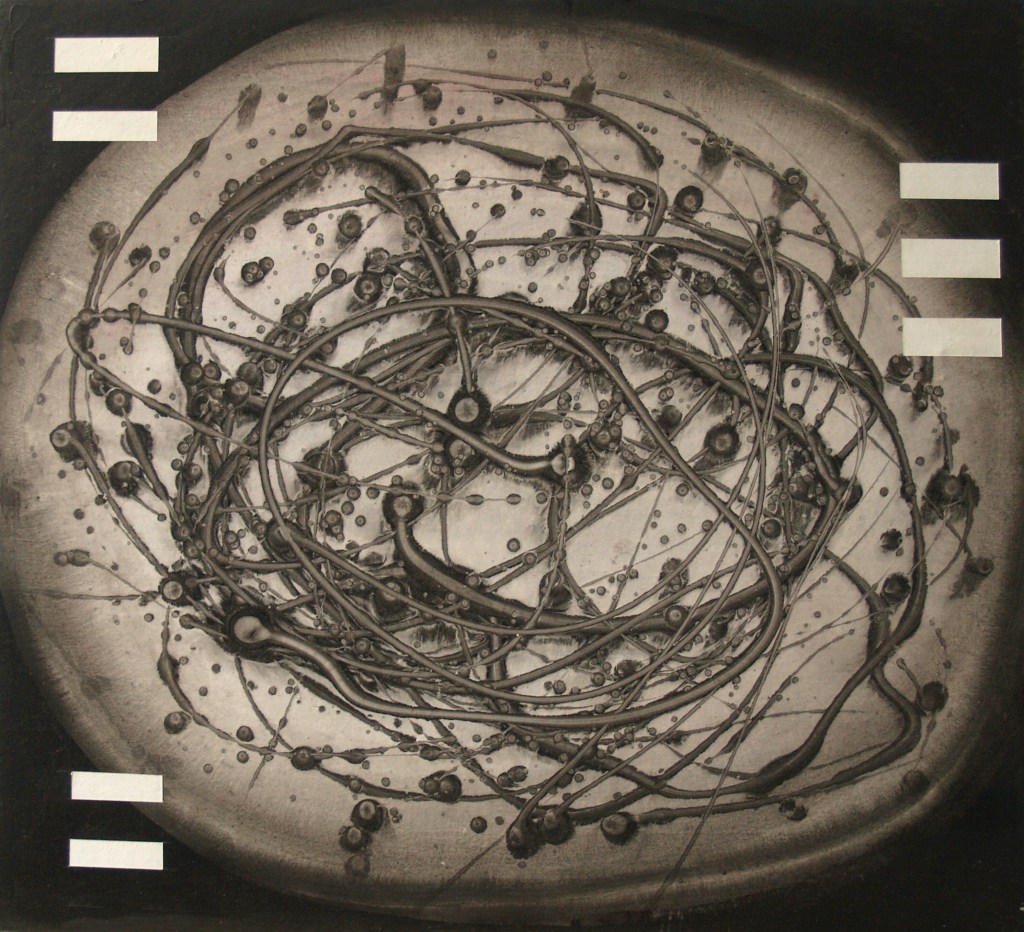 «Cartografía celular sepia», 2003, 27 x 27, acrílico sobre lienzo