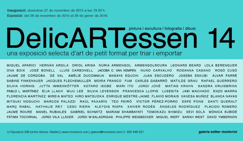 DelicARTessen 14, Galería Esther Montoriol 2015 Compártelo: Compartir en X (Se abre en una ventana nueva) X Comparte en Facebook (Se abre en una ventana nueva) Facebook Me gusta Cargando...