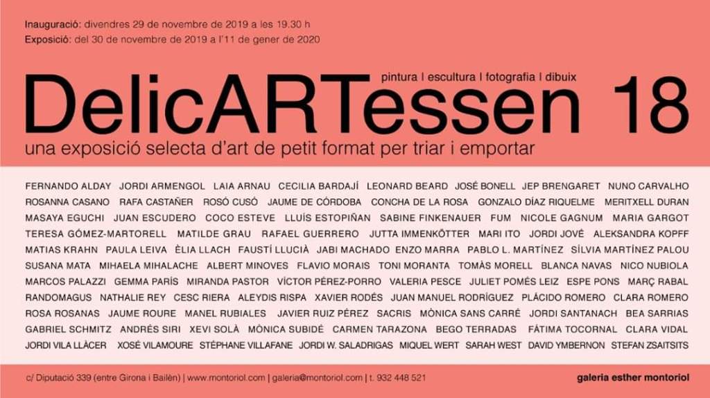 DelicARTessen 18, Galería Esther Montoriol 2019 Compártelo: Haz clic para compartir en X (Se abre en una ventana nueva) X Haz clic para compartir en Facebook (Se abre en una ventana nueva) Facebook Me gusta Cargando...